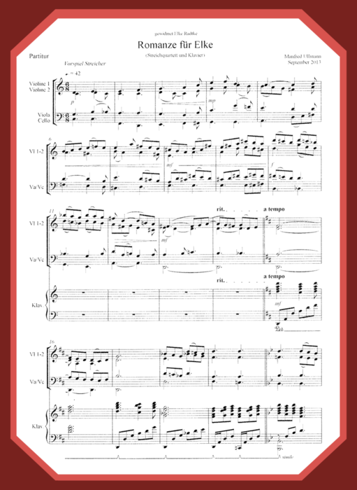 Streichquartett (Vl 1, Vl 2, Va, Vc) und Klavier